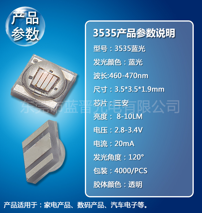 3535藍光1-3W貼片LED燈珠手機指示燈