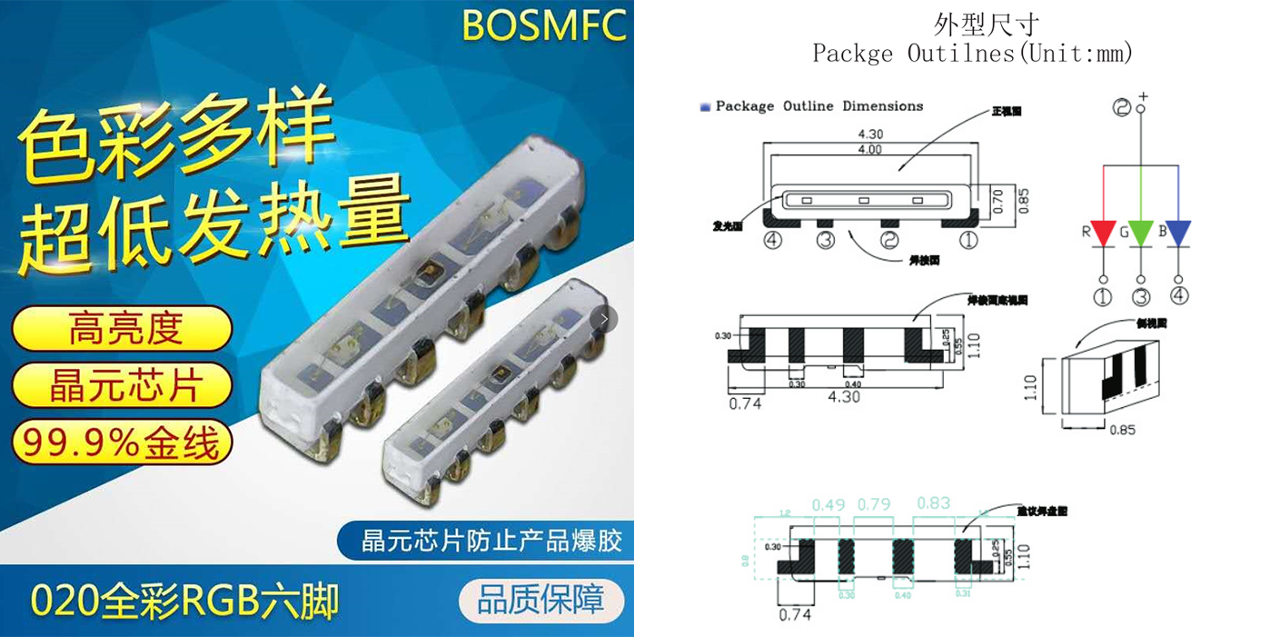 h、020rgb燈珠焊接:有鉛/無(wú)鉛回流焊焊接;符合ROHS標(biāo)準(zhǔn)