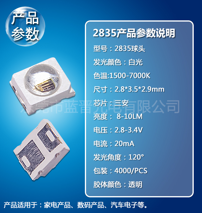2835球頭LED貼片美容儀器專用LED燈珠