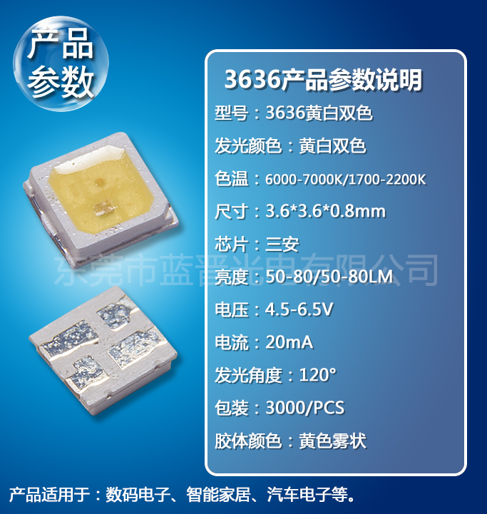 3636黃白雙色LED貼片帶IC室內照明LED燈珠